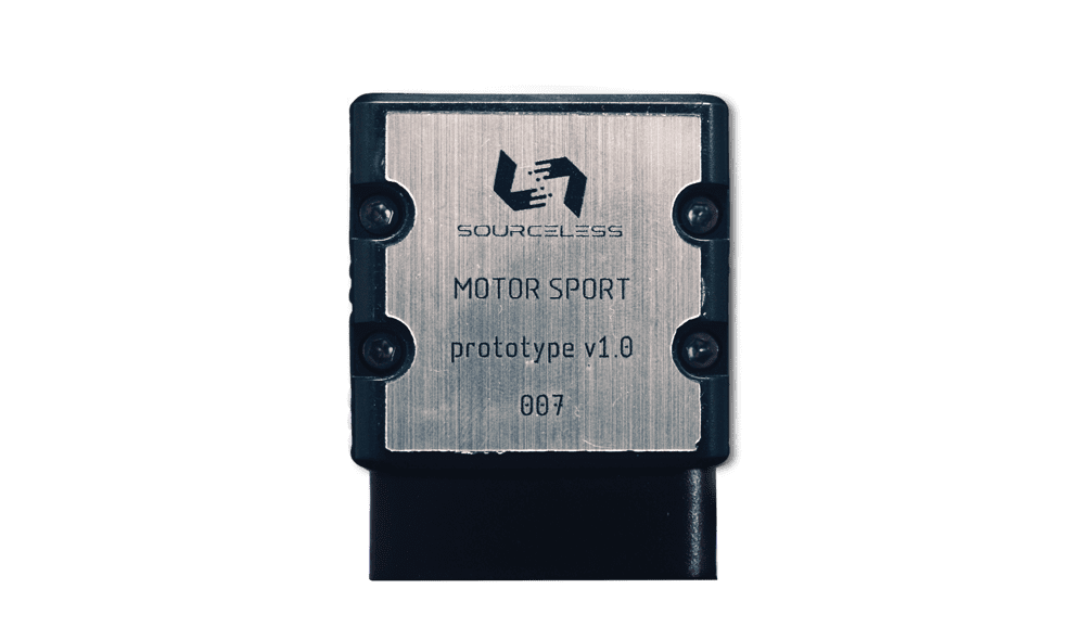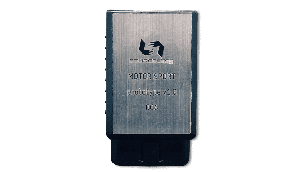 The SourceLess Motorsport Device (SL-MS1) introduces a blockchain-secured, decentralized diagnostic system, where each device functions as both a diagnostic interface and a node in the SourceLess blockchain network.